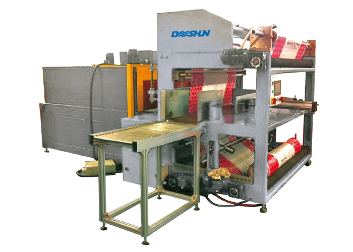DS-AP1500全自動防水卷材封切包裝機采用光電對產品進行自動偵測,可選用自動進料或手工進料兩種模式,采用單片印刷薄膜,對卷材進行袖口式包裝;