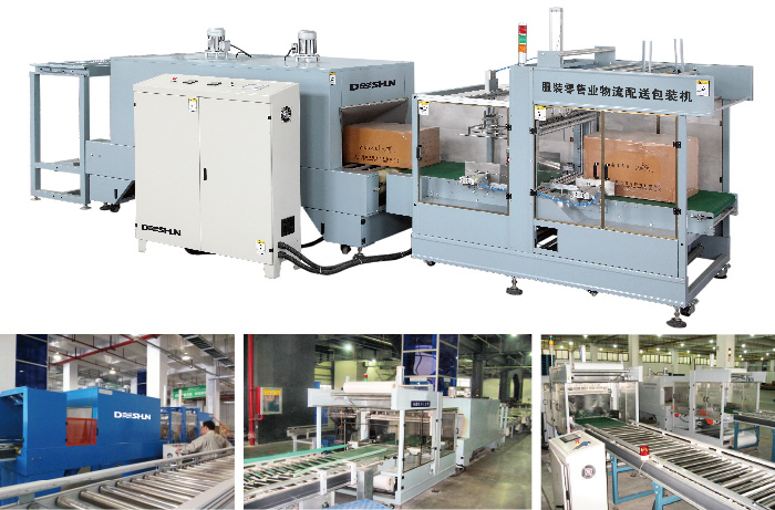 2009年針對服裝物流企業目前存在的中轉箱配送貨中,包裝成本高昂,包裝效率低下,出貨量受制、箱子狀況隱蔽,丟、換、偷現象多發且無法直觀發現和判定責任等問題,我司定向開發出全新的適合服裝物流行業配送包裝的大紙箱包裝機。一舉解決了長期困擾本行業企業發展的包裝問題。得到行業的接收和認可。目前與國內大部分的有影響力的品牌企業建立了合作平臺。并為他們提供服務。(森馬、海瀾、太平鳥、報喜鳥、紅蜻蜓、都市麗人、愛慕、依戀、CC&DD、GXG等)
